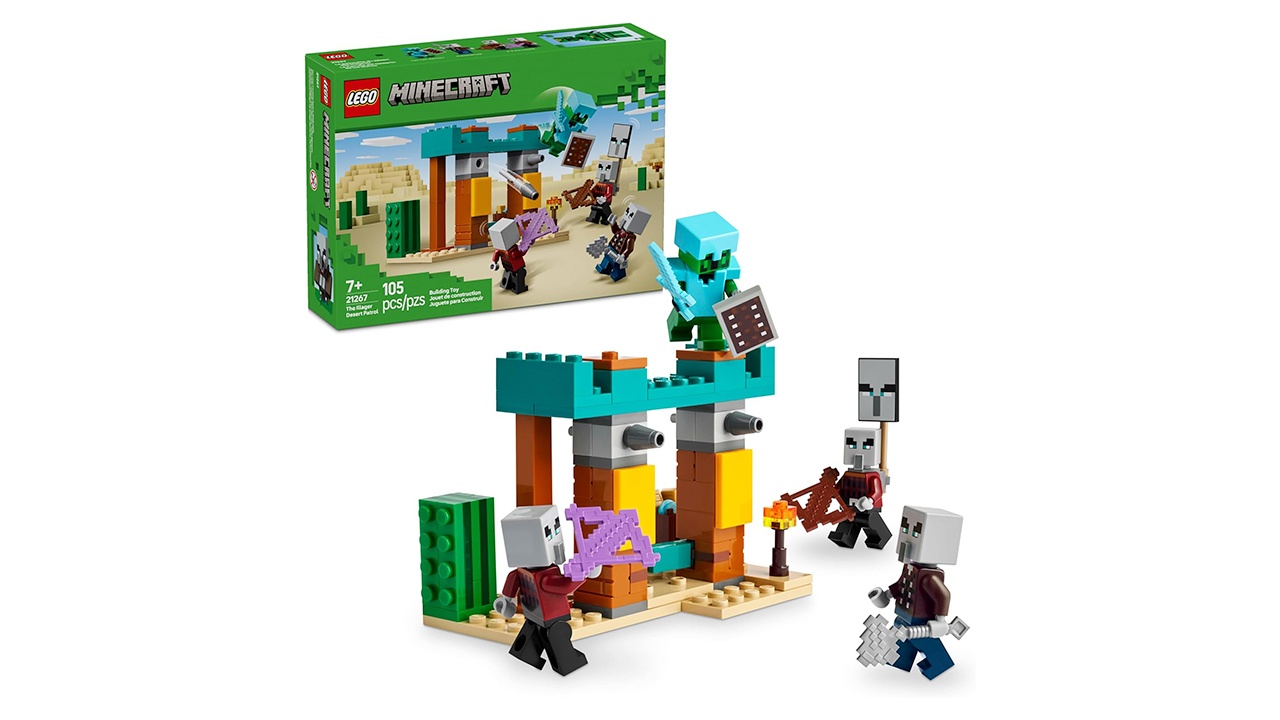 Se você curte ação, o A Patrulha de Illagers no Deserto (21267) traz tudo que há de legal! Com quatro figuras LEGO, acessórios e mísseis que podem voar (literalmente!) com um toque, o que mais você precisa para se divertir em pleno deserto? Sem contar com um barril cheio de tesouros!