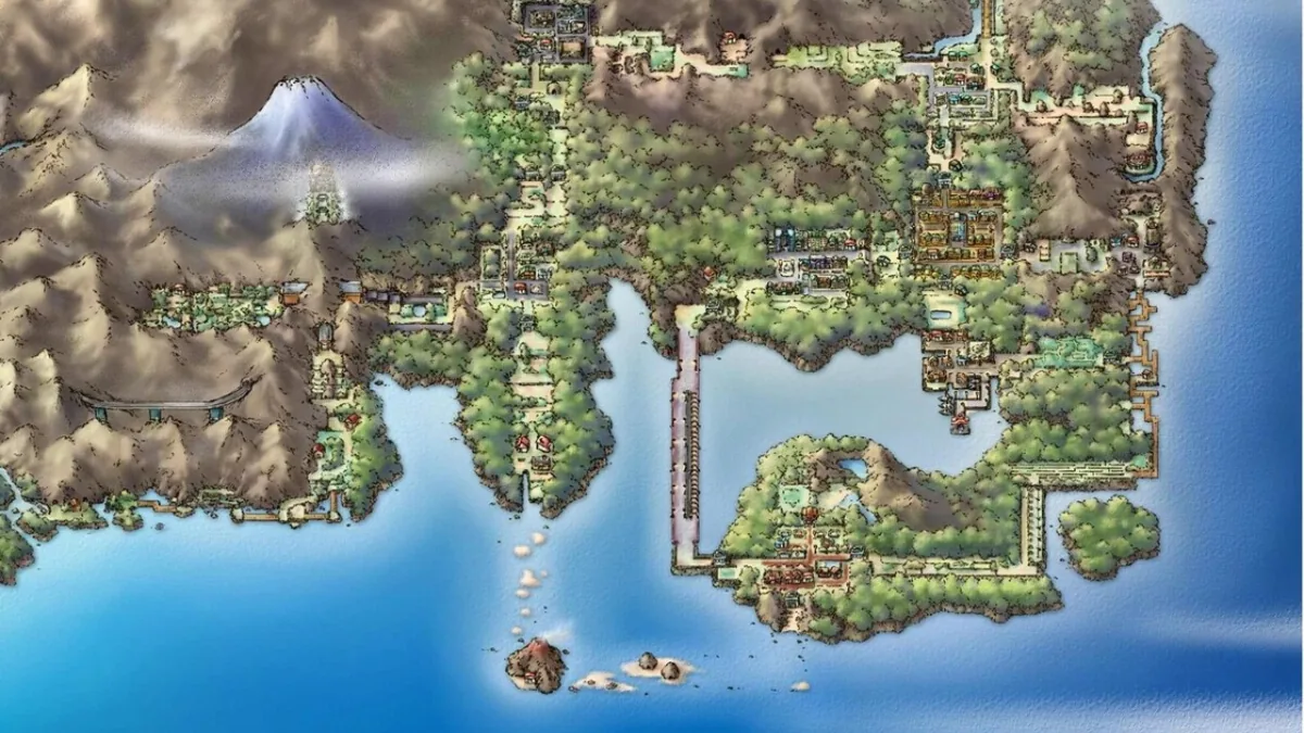 E não para por aí! Johto também deu pinta! Olha a inspiração rolando: é bem parecida com as regiões de Kansai, Chūbu e Shikoku! Parece que a Game Freak não apenas olhou no mapa, mas fez um tour. Pode até ser que a fidelidade visual não seja perfeita, mas se você manja do assunto, vai sentir aquele “conheço esse lugar” na hora!