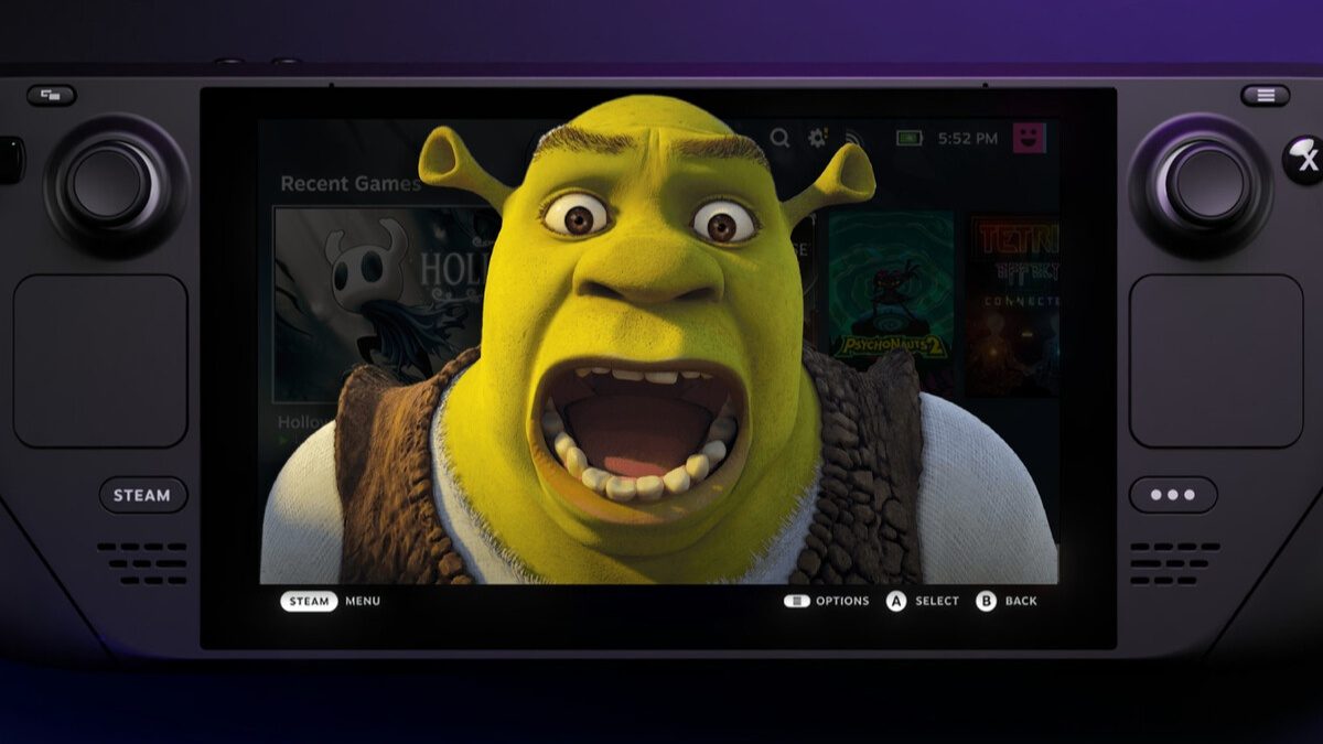 O advento do “Shrekonomics” começou quando um tal de thstephens8789, famosíssimo no Reddit, resolveu brincar de "Deus" com seu Steam Deck. O cidadão encontrou o lugar onde o vídeo de abertura estava guardado e, num ato de pura ousadia, resolveu setar o longa da DreamWorks como a nova apresentação. O problema? Agora o bichinho começava a festa com Shrek desde a primeira cena e não parava até o final do filme! Quanta potência de hype, não?