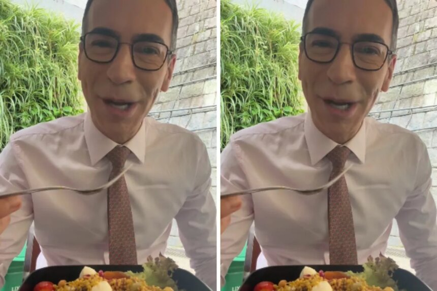 E adivinha? Ele não tá nem aí para o glamour do local! “Quem disse que eu ia largar mão dessa preciosidade? Marmita é amor eterno, galera! Encontrei um cantinho ao ar livre, com plantas e tudo mais, para esquentar meu peixe. Primeiro a saladinha, claro! Antigamente eu almoçava depois do JH, lá pelas 15h30, mas agora tô antes do Jornal Nacional, porque senão vira janta!”, contou ele, firme e forte na tradição da marmita.