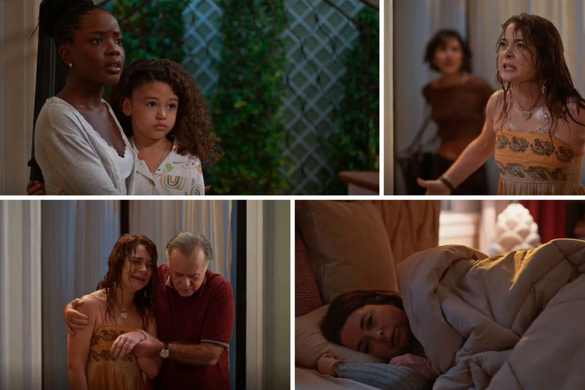 Depois de ir buscar Nina em São Cristóvão, onde a garota tinha decidido fazer um “escape”, Filipa chega completamente exausta. E adivinha? Ela escorrega em cascas de banana espalhadas pelo caminho e, só para completar o desespero, um balde d’água cai na cabeça dela. A cena é digna de um filme de comédia: “Sofia, foi você que armou isso?”, grita Filipa, toda molhada e em lágrimas.