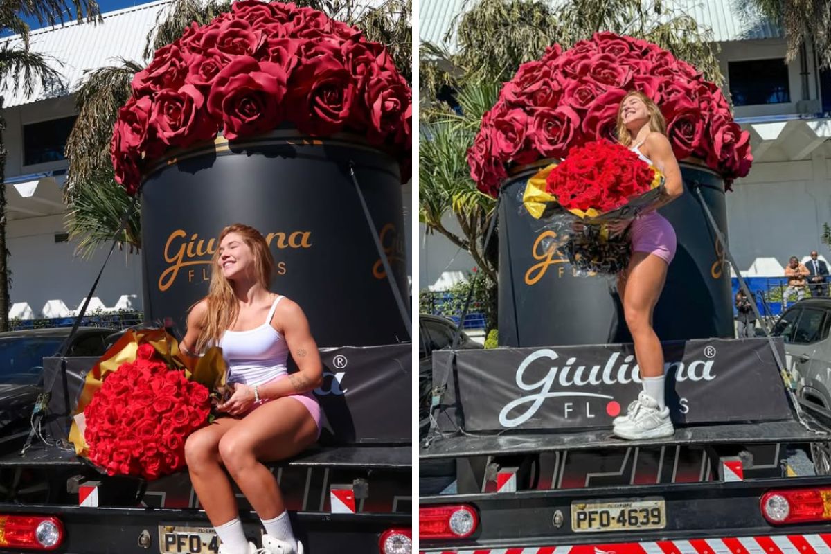O buquê gigante precisou de um caminhão só para ele, e claro que isso não passou despercebido pela galera que a acompanha. A moça ainda marcou a postagem com uma letra bem romântica: “Eu te trouxe rosas, todas perfumadas e você é a mais cheirosa.” Ou seja, só para deixar todo mundo curioso!