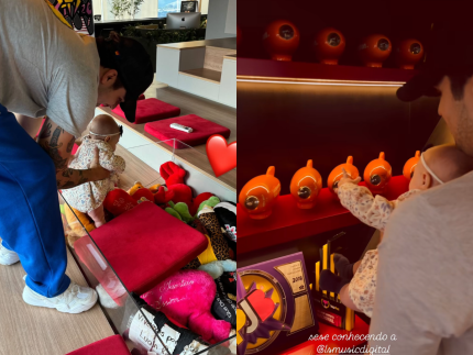 “Olha só a Sese conhecendo a LS Music”, postou Luan, enquanto exibia o passeio com a bebê no colo, sem mostrar o rosto dela, claro! A fofura estava de laço na cabeça e vestidinho de manga comprida, e até deu uma olhadinha nos prêmios do papai. Imagina cenas de um superstar apresentando seu legado a sua mini versão!