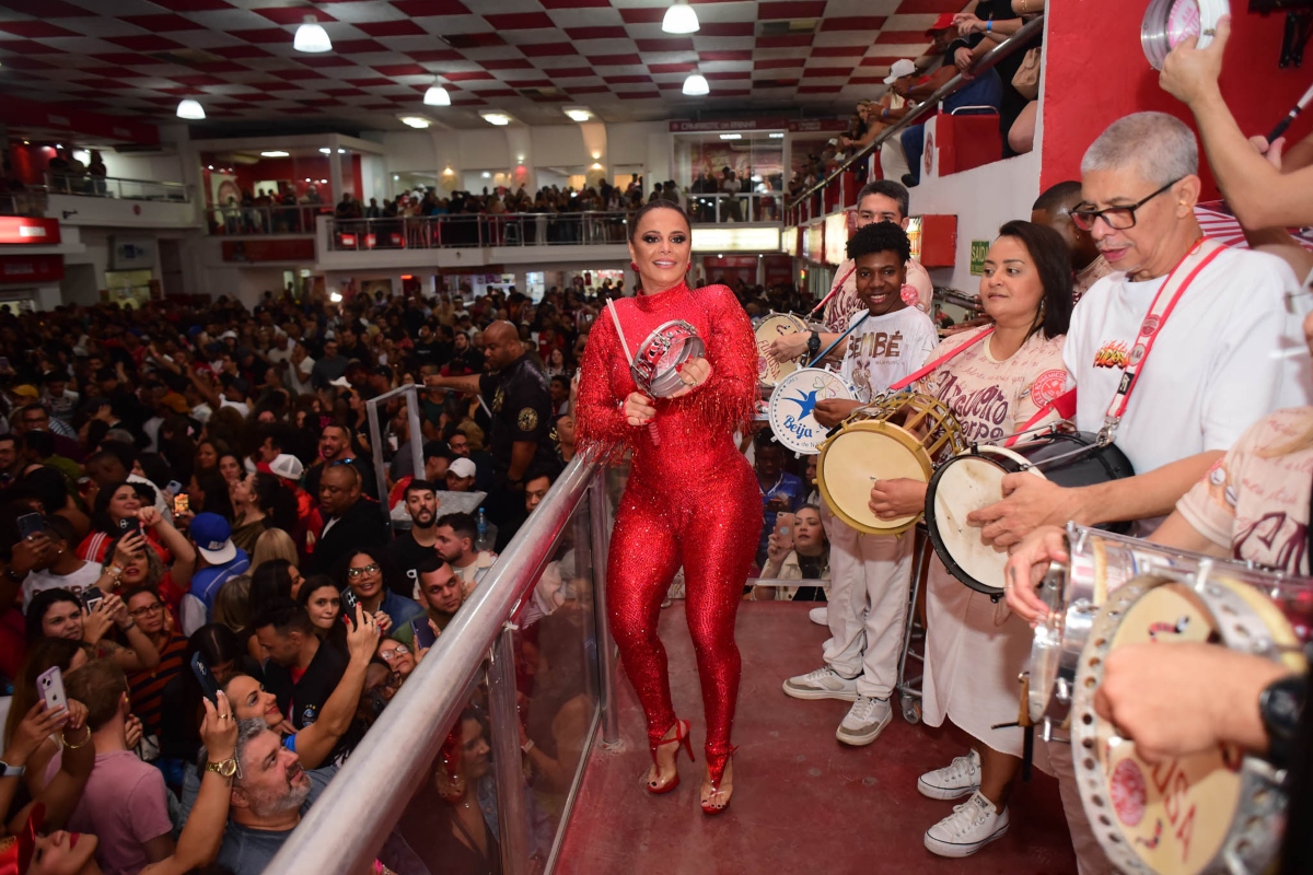 Dançando na frente da “Bateria Furiosa”, Viviane não estava só sambando, estava tocando tamborim como se fosse a coisa mais fácil do mundo. Ela estava lá para a abertura do evento “Salgueiro Convida”, que já começou os preparativos para o Carnaval de 2026. E que noite, meu amigo! A famosa trocou uns beijos românticos com seu maridão, Guilherme Militão, e ainda posou com a galera, incluindo os atores Carla Cristina Cardoso e Samuel de Assis. Era um verdadeiro desfile de alegria!